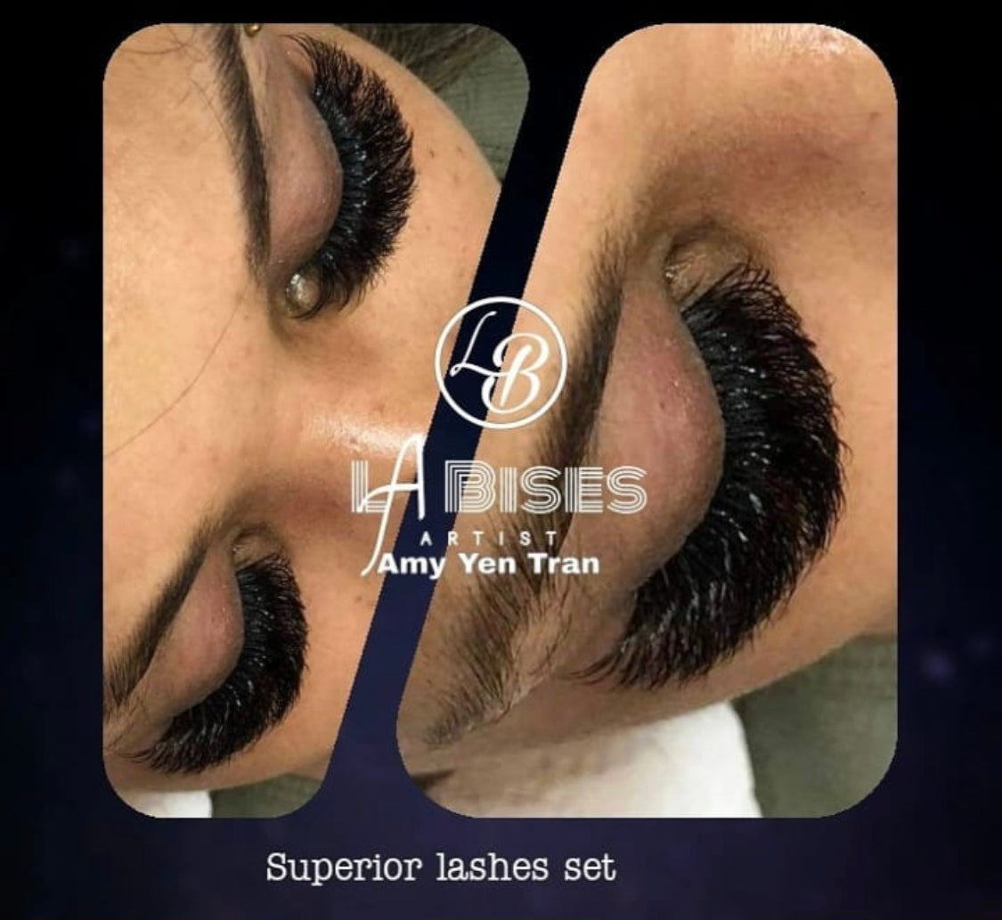 Volume lashes are designed for a fuller appearance. They involve applying multiple lightweight extensions (0.07mm or 0.10mm) to each natural lash, often referred to as 3D, 4D, 5D, or 6D, based on the number of extensions used. A full set usually contains 200 to 300 extensions, again depending on the client’s natural lashes.