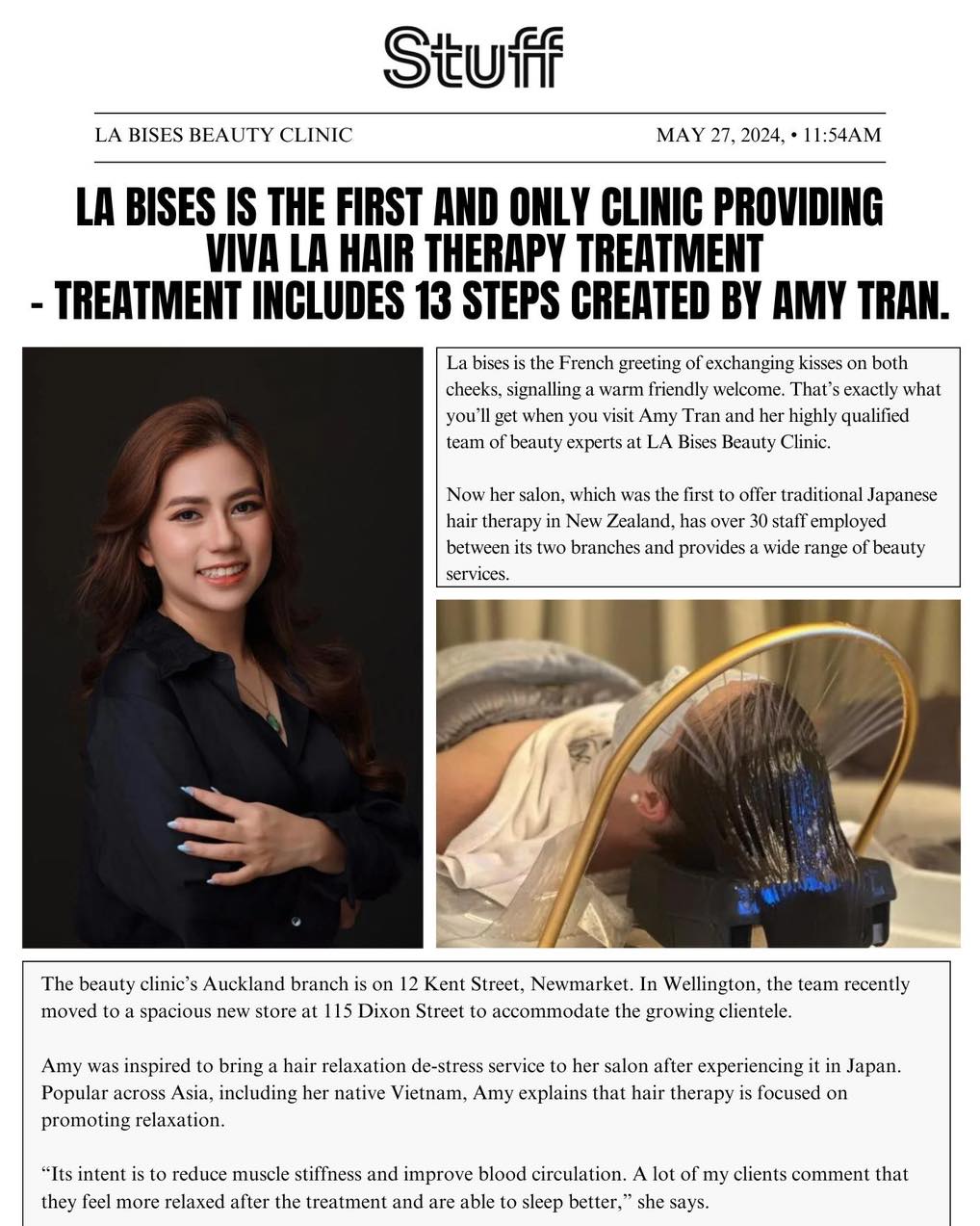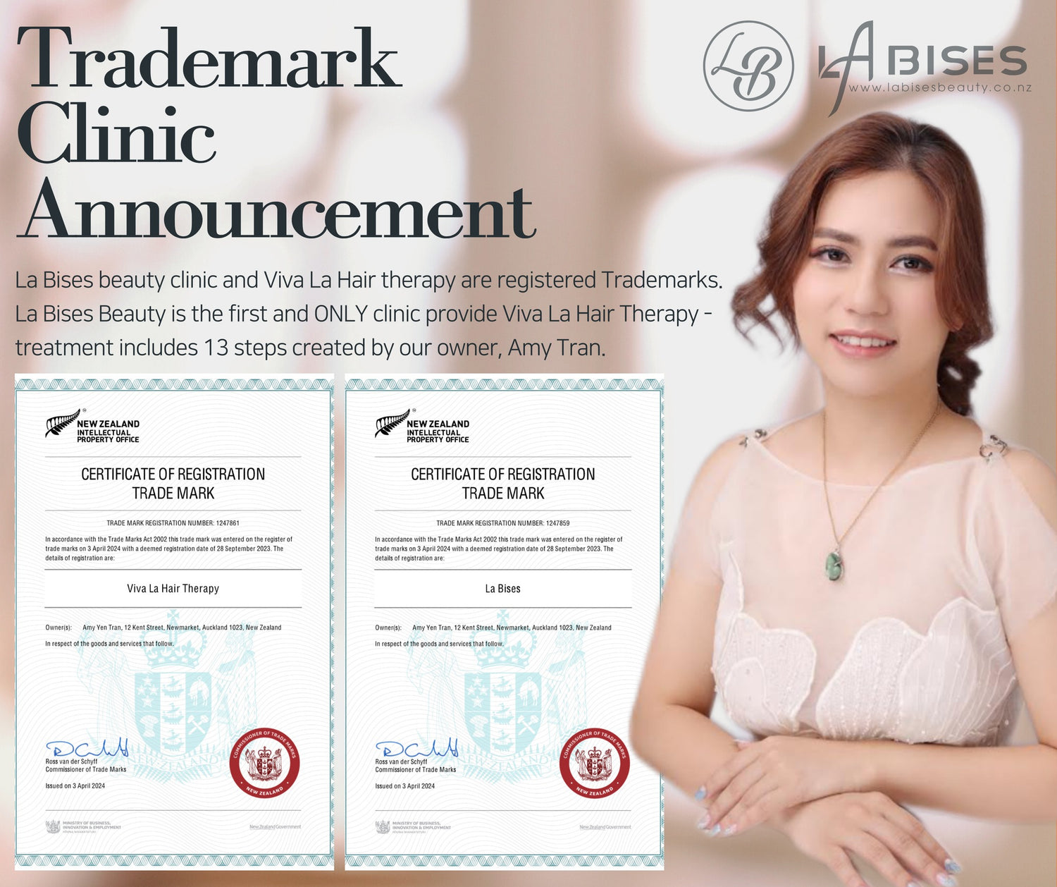 Viva La Hair Therapy are proudly registered trademarks, and La Bises Beauty is the first and only clinic in New Zealand to offer the exclusive Viva La Hair Therapy. This unique 13-step treatment was created by our owner, Amy Tran.