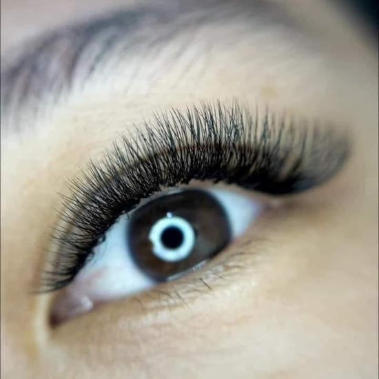 Volume lashes are designed for a fuller appearance. They involve applying multiple lightweight extensions (0.07mm or 0.10mm) to each natural lash, often referred to as 3D, 4D, 5D, or 6D, based on the number of extensions used. A full set usually contains 200 to 300 extensions, again depending on the client’s natural lashes.