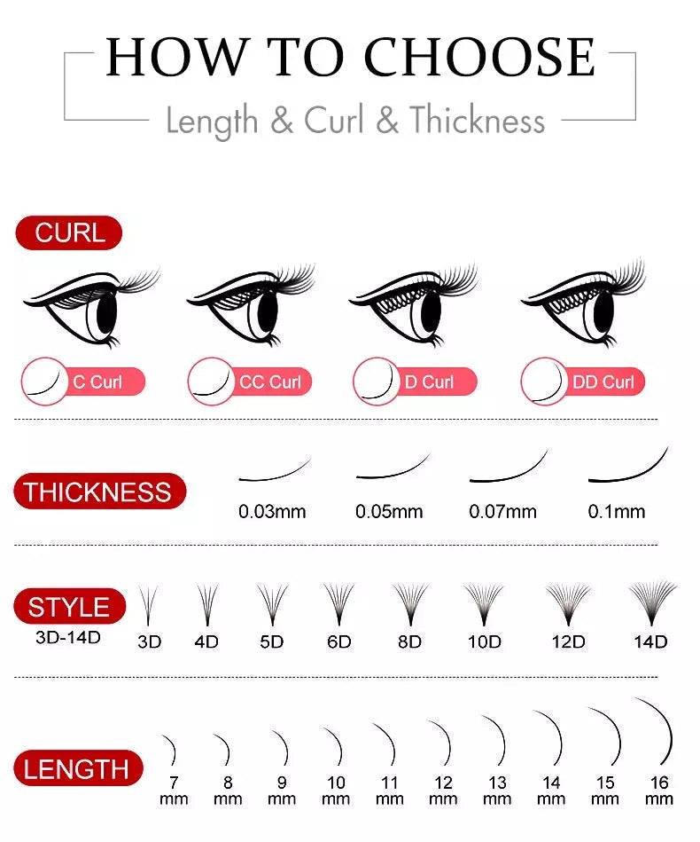 - Material: high quality Silk lashes. Premade volume eyelash extensions based on the normal basis, baking technology was added to make the curvature more durable and softer.